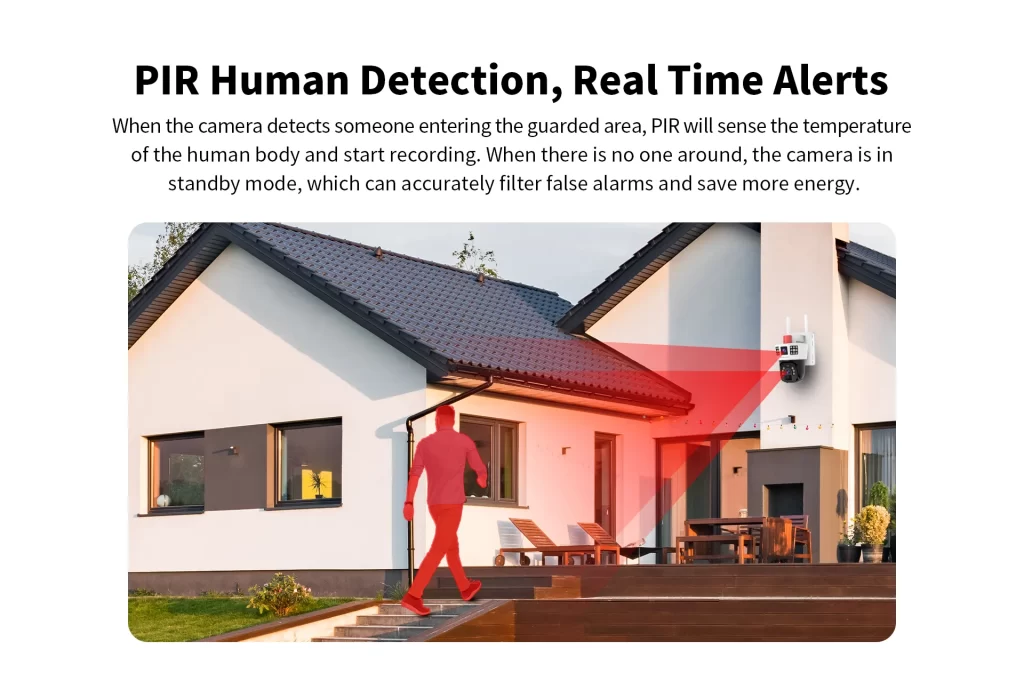 | Alarm detection | Support for human detection, PIR infrared human detection for 10 meters | |