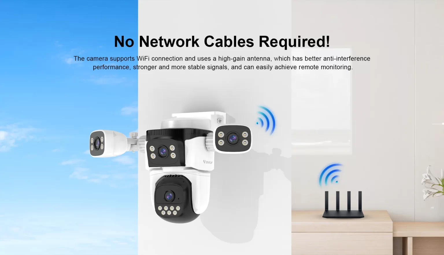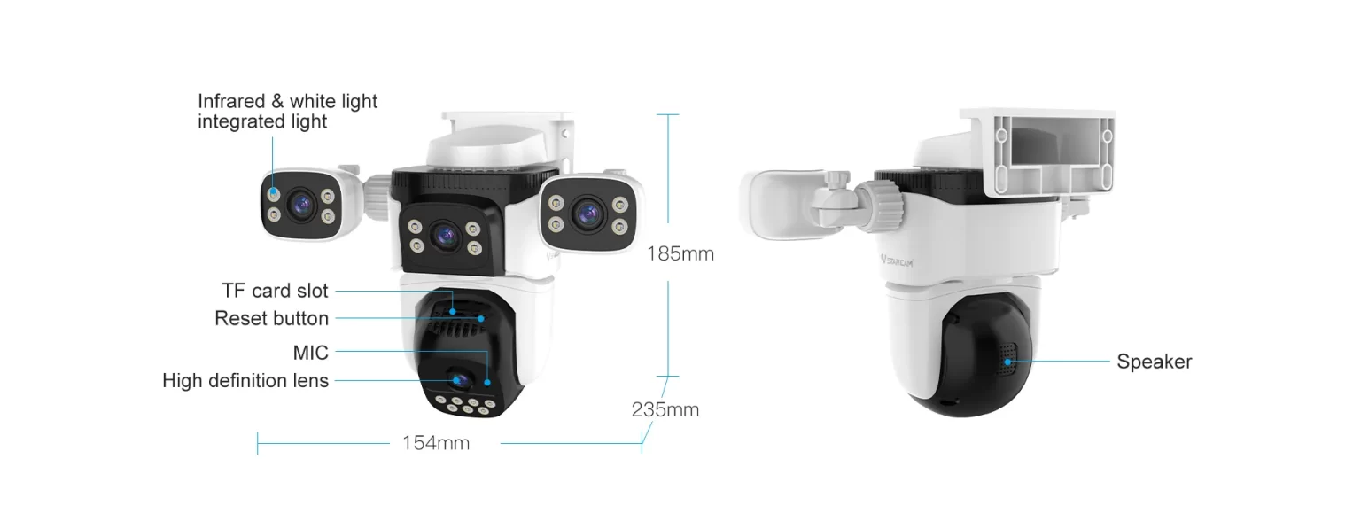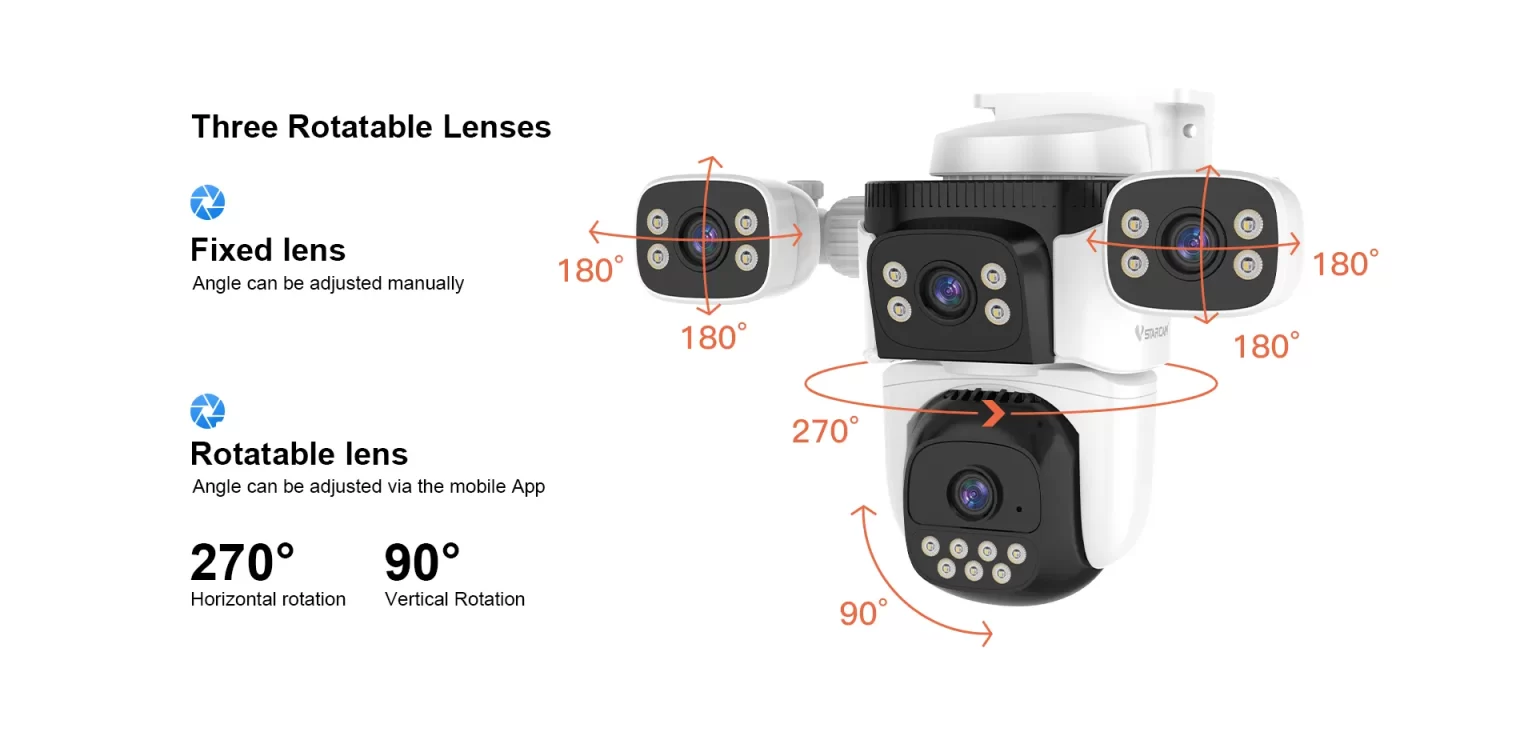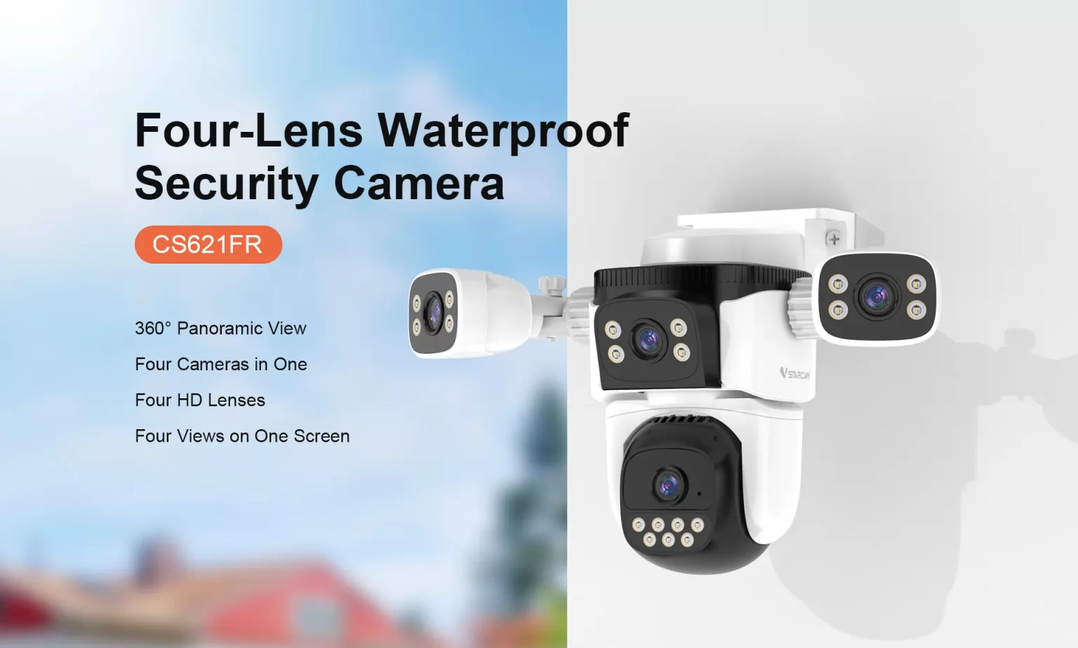 “VStarcam CS621FR delivers quad-lens 12 MP (4×3 MP) outdoor surveillance, featuring pan/tilt control, human detection, two-way audio, and vivid full-color night vision—robust, multipal recording options, comprehensive security for your home or business.”